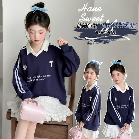 不*9收藏“GTJ603款学院风V领卫衣花边裙套装”
